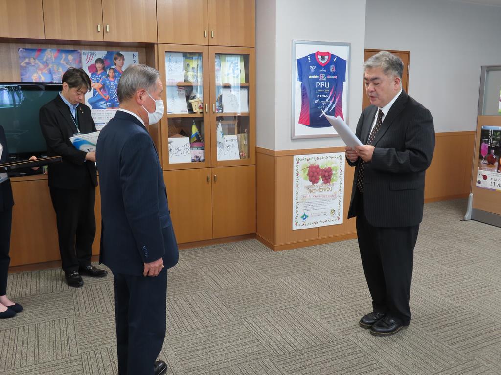 令和8年2月19日、かほく市総合計画審議会の小林会長から、第3次かほく市総合計画についての答申書が油野市長に手渡されました。